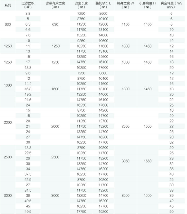 帶式真空壓濾機(jī)是以真空負(fù)壓為推動(dòng)力實(shí)現(xiàn)固液分離的設(shè)備,在結(jié)構(gòu)上,過濾區(qū)段沿水平長度方向布置,可以連續(xù)完成 過濾、洗滌、吸干、濾布沖洗等作業(yè)。帶式真空壓濾機(jī)具有自動(dòng)化程度高、生產(chǎn)能力大、洗滌效果好、分離效果好、濾餅水分低、操作靈活,維修費(fèi)用 低、節(jié)能環(huán)保等優(yōu)點(diǎn)。其自動(dòng)化程度高,可實(shí)現(xiàn)連續(xù)生產(chǎn),提高了過濾效率;生產(chǎn)能力大,可滿足大規(guī)模生產(chǎn)的需求;分離效果好,能夠有效地將固體顆粒與液體分離;同時(shí),由于其采用負(fù)壓原理工作,能耗較低,對(duì)環(huán)境無污染。